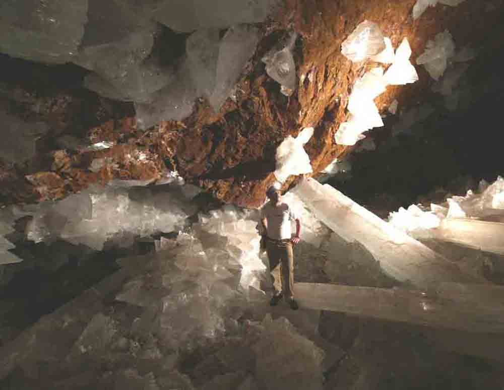 どでかい水晶の柱がニョキニョキと生え、中には直径1.2m、長さ15mのものもあるという。